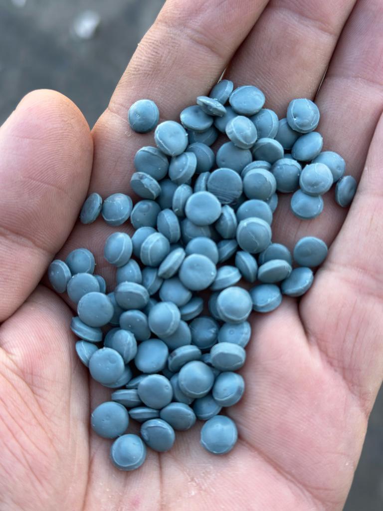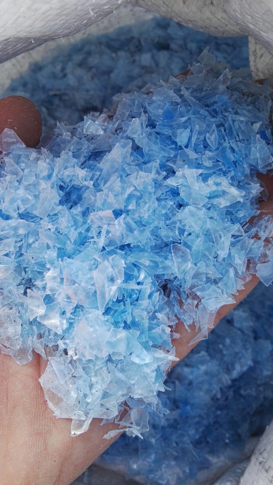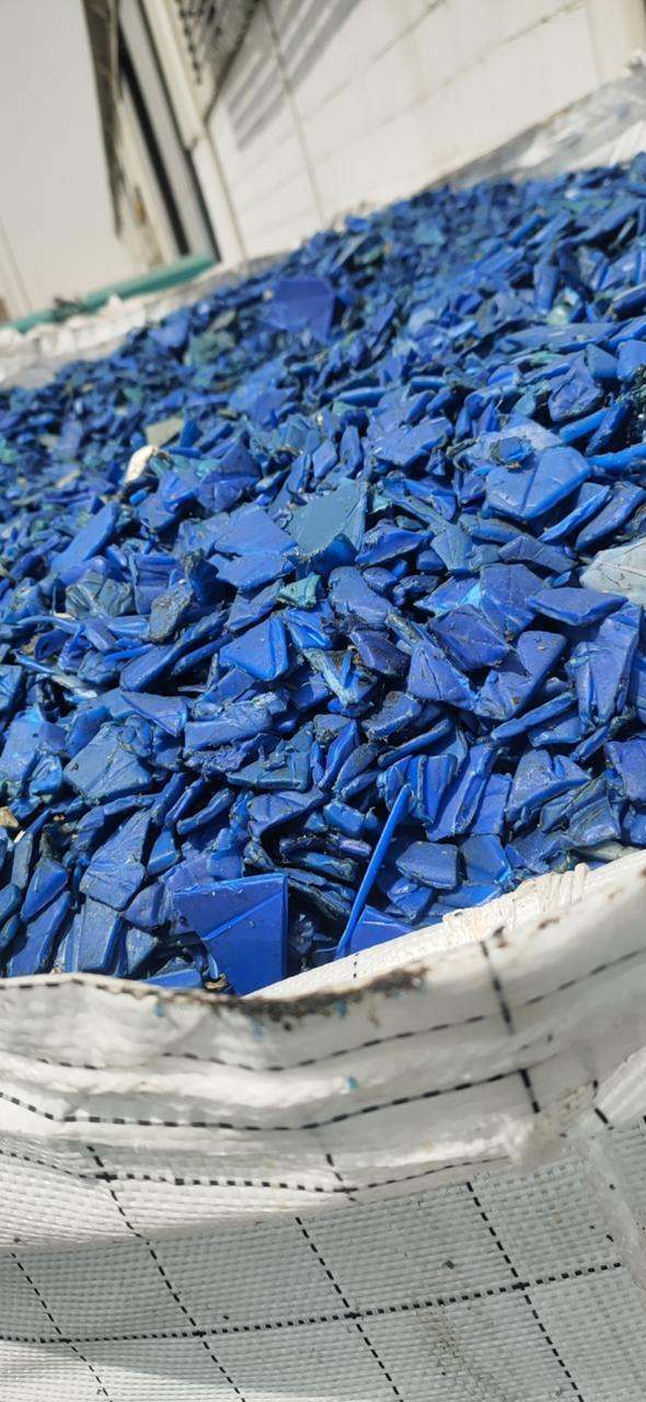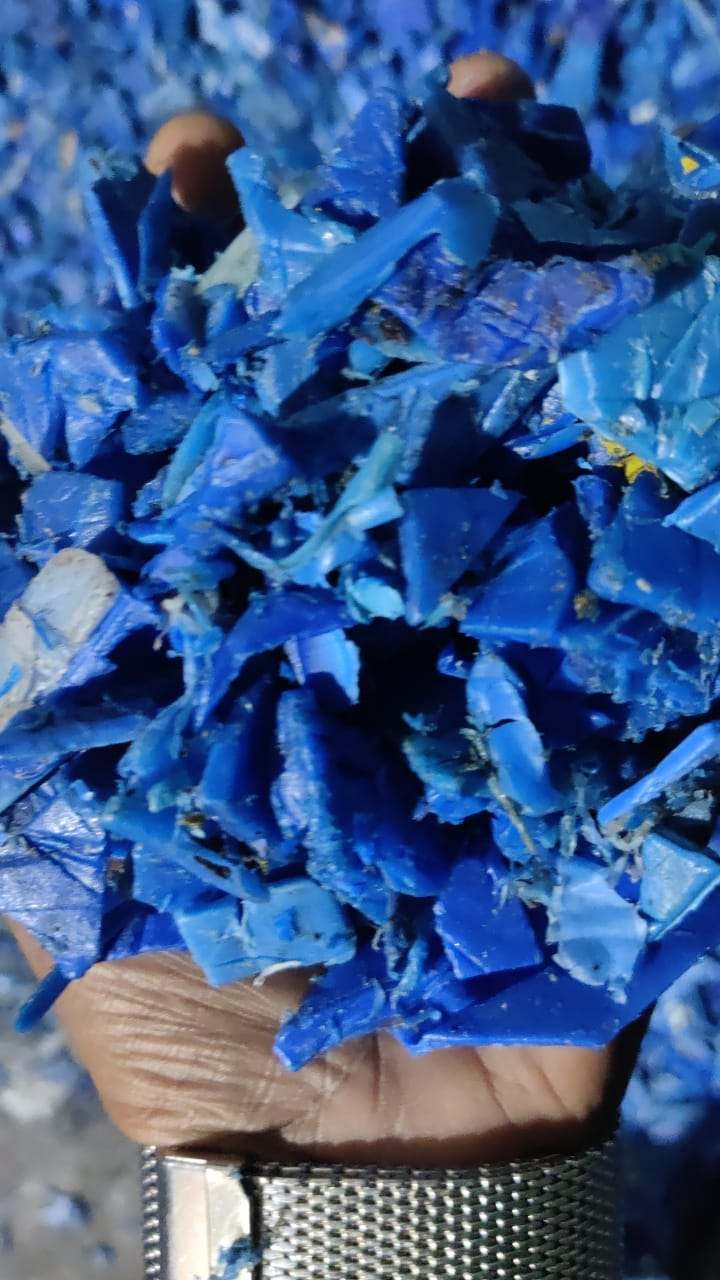 High-quality HDPE blue drum regrind with consistent particle size. Ideal for blow molding and injection applications.