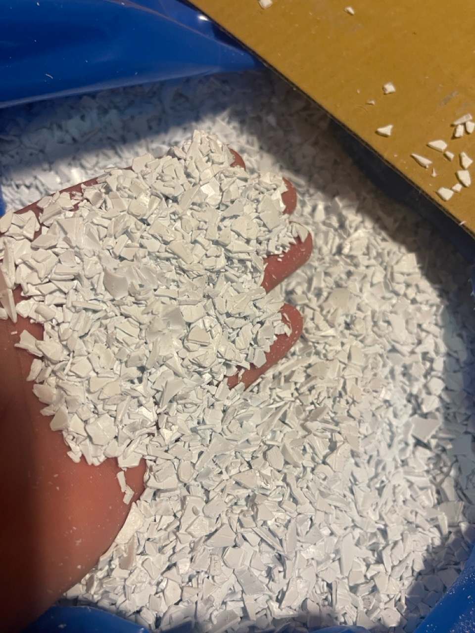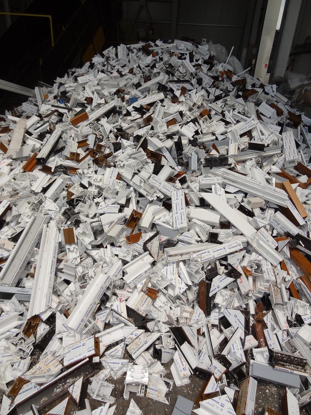 PVC window profile regrind with consistent quality. Perfect for construction and building applications.