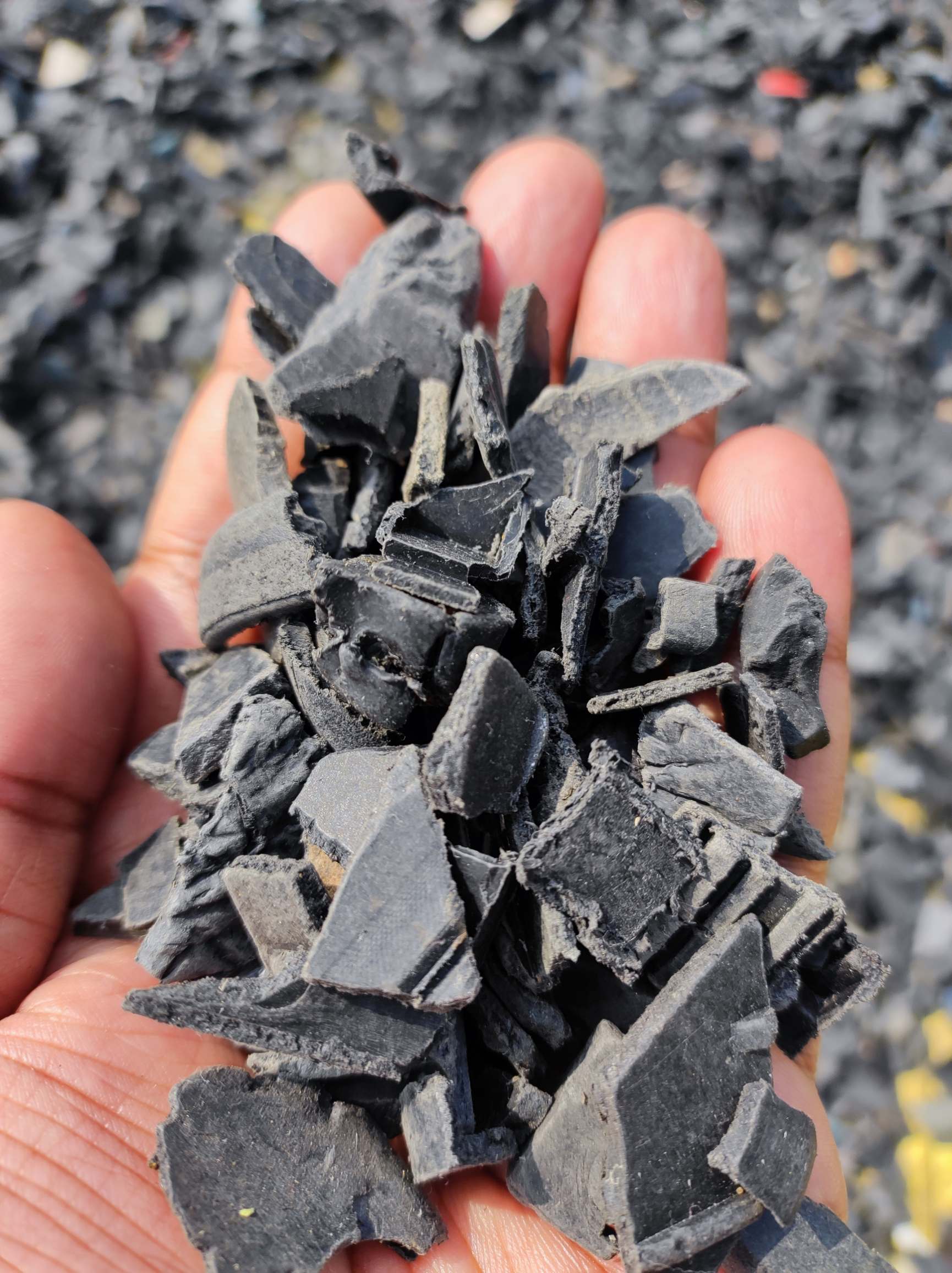 ABS black regrind with glass fiber reinforcement. Enhanced strength and durability for automotive components.